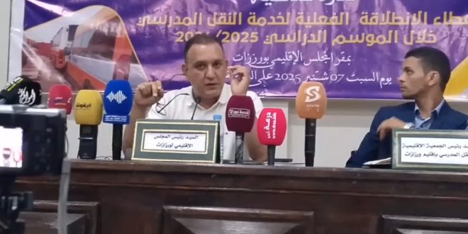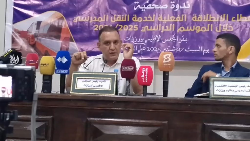 مروان قراب | ورزازات | نظم المجلس الإقليمي لورزازات، يوم السبت 6 شتنبر 2025، ندوة صحفية خصصت لمناقشة تدبير مرفق النقل المدرسي للموسم الدراسي 2025/2026، وذلك بشراكة مع الجمعية الإقليمية المفوض لها تدبير هذا المرفق الحيوي.