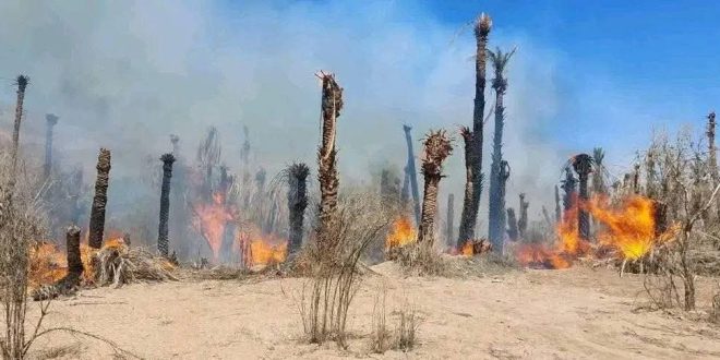زاكورة | اندلع حريق مهول، صباح اليوم، بواحة “تسركات” التابعة للجماعة الترابية تنسيفت بإقليم زاكورة، مخلفاً خسائر مادية جسيمة بعد أن أتى على ما يقارب ألف نخلة، في حادث أعاد إلى الواجهة إشكالية حماية المنظومات الواحية من أخطار الحرائق المتكررة.