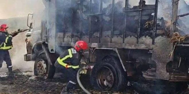 ولحسن الحظ، لم تُسجل أية خسائر بشرية، في وقت خلّف فيه الحريق خسائر مادية جسيمة بالشاحنة المحترقة.