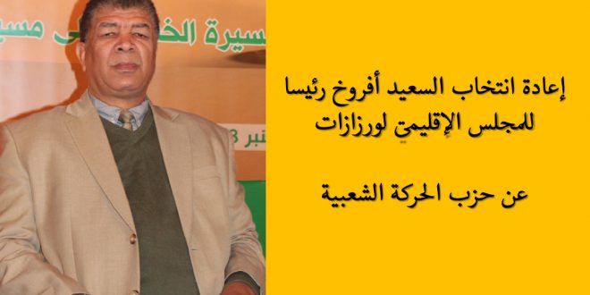 ورزازات – انتخب صباح اليوم الثلاثاء، السيد السعيد أفروخ، عن حزب الحركة الشعبية، رئيسا للمجلس الإقليمي لورزازات لولاية ثانية.