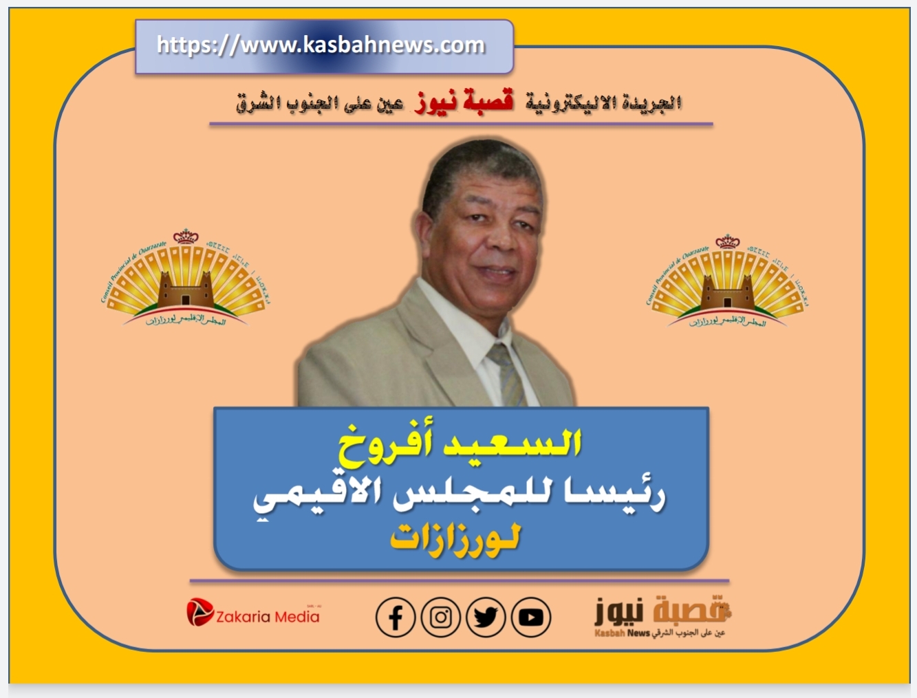 وانتخب أفروخ بالإجماع، أي على ثقة 15 عضو، الذين يتألف منهم المجلس الإقليمي لورزازات، خلال جلسة انتخابية حضرها عامل الإقليم السيد عبد الرزاق المنصوري.
