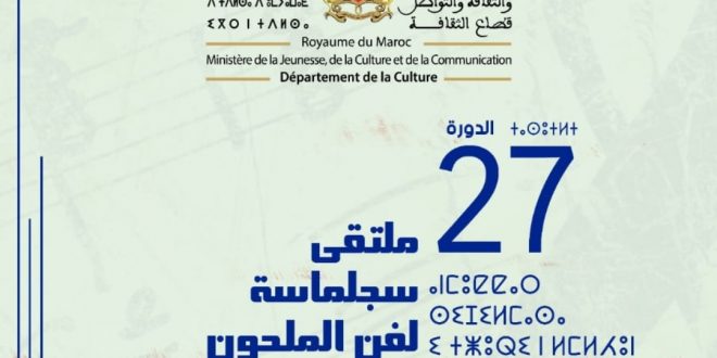 تحت الرعاية السامية لصاحب الجلالة الملك محمد السادس نصره الله، تنظم وزارة الشباب والثقافة والتواصل -قطاع الثقافة- بتعاون مع ولاية جهة درعة تافيلالت وبدعم من جماعة مولاي علي الشريف، الدورة 27 لملتـقـى سـجـلماسـة لـفـن الـمـلحـون أيام 27 و 28 و 29 ماي 2022 بمدينة الريصاني تحت شعار: “فن الملحون بين رهان الهوية وتحديات التجديد”.