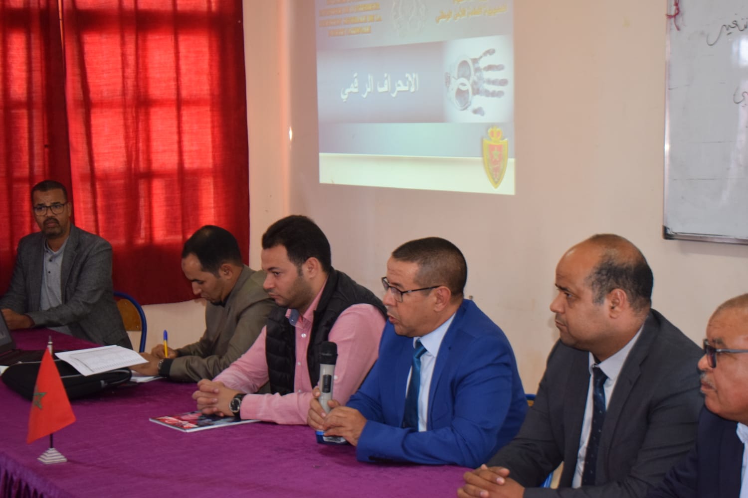 كما قدم الفريق الأمني بالمفوضية عرضا حول الانحراف الرقمي الذي تناول فيه المؤطر محاور تهدف توعية الناشئة بمخاطر الإجرام المعلوماتي، وكيف يقوم رجال الأمن بحمايتنا في العالم الرقمي … ودور الفرق الأمنية المتخصصة في محاربة الجرائم المعلوماتية.