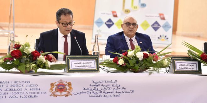 أكد السيد يوسف بلقاسمي، الكاتب العام لوزارة التربية الوطنية والتعليم الأولي والرياضة، خلال ترؤسه أشغال الدورة العادية للمجلس الإداري للأكاديمية الجهوية للتربية والتكوين لجهة درعة تافيلالت برسم سنة 2022، بتفويض من السيد شكيب بنموسى، وزير التربية الوطنية والتعليم الأولي والرياضة، يومه الأربعاء 14 دجنبر 2022، بمدينة الرشيدية، أن خارطة الطريق من أجل مدرسة عمومية ذات جودة للجميع تراهن على الأستاذ(ة) كقطب محوري ضمن أقطابها الثلاثة لتحقيق أهدافها الاستراتيجية الرامية إلى تجويد المدرسة العمومية، وذلك من خلال توفير تكوين ذي جودة يمكن الأستاذات والأساتذة من الكفايات المهنية الضرورية لتوفير تعليم ناجع ضامن للتحكم في التعلمات، مع توفير بيئة عمل ملائمة تستجيب لاحتياجاتهم وتعزز تأثيرهم الإيجابي على التلاميذ وتساهم في تفتح المتعلمين، ونظام محفز ومثمن للمردودية، بما يضمن تكافؤ الفرص ويساهم في تحفيز هيئة التدريس تشجيعها على بذل المزيد من الجهد للارتقاء بتعلمات التلميذات والتلاميذ.