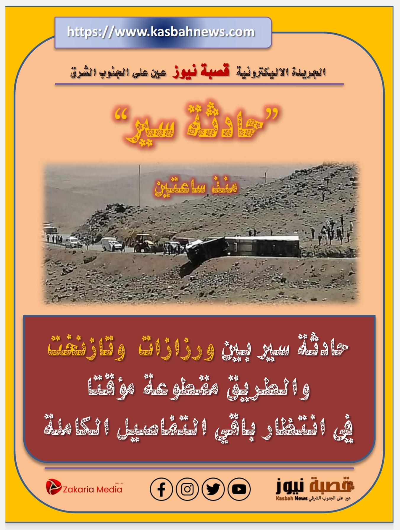 عاجل .. حادثة سير بين ورزازات وتازنخت قصبة نيوز أبريل 24, 2023 محلي اضف تعليق 714 زيارة شاركها Facebook Twitter شارك هذا الموضوع: انقر للمشاركة على WhatsApp (فتح في نافذة جديدة) WhatsApp انقر للمشاركة على فيسبوك (فتح في نافذة جديدة) فيس بوك اضغط للطباعة (فتح في نافذة جديدة) طباعة انقر للمشاركة على Telegram (فتح في نافذة جديدة) Telegram النقر للمشاركة على X (فتح في نافذة جديدة) X معجب بهذه:إعجاب تحميل...