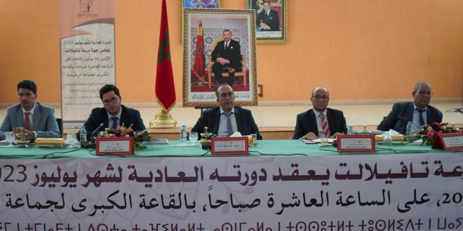 الراشيدية – عقد مجلس جهة درعة تافيلالت دورته العادية لشهر يوليوز 2023 امس الاثنين 03 يوليوز 2023 بالقاعة الكبرى بمدينة الرشيدية وقد تضمن جدول اعمال هذه الدورة التي ترأسها النائب الأول للرئيس نقطة تهم اتفاقية شراكة تتعلق بتمويل وإنجاز مشروع “تحسين جاذبية مركز جماعة فركلة السفلى إقليم الرشيدية”.