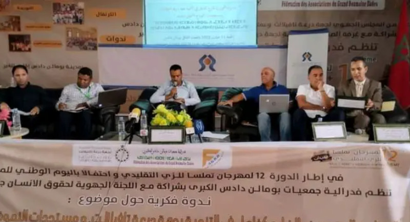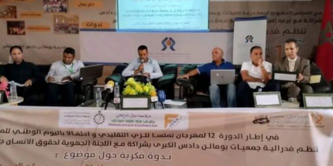 يومالن دادس/حسن الطاهيري – على هامش الدورة 12 من مهرجان تملسا للزي التقليدي المنظم من طرف فدرالية جمعيات بومالن دادس الكبرى من 10 إلى 17 غشت الجاري، وتنويعا في الأنشطة و فقرات المهرجان نظمت إدارة المهرجان صباح اليوم الجمعة 11 غشت، ندوة فكرية أولى حول موضوع المغاربة المقيمين بالمهجر كفاعل في تنمية جهة درعة تافيلالت و مستجدات النموذج التنموي الجديد في هذا الصدد وذلك بالفضاء الثقافي بومالن دادس.