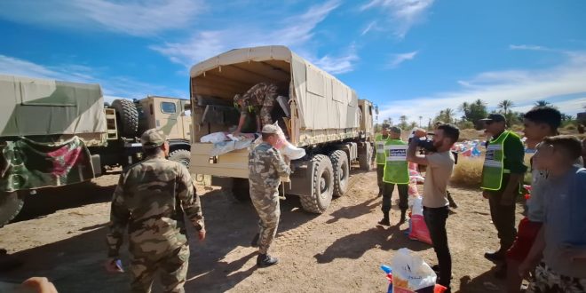 وفور وصولها إلى هذا الدوار، الذي يبعد عن مدينة ورزازات بحوالي 100 كلم، شرعت عناصر القوات المسلحة الملكية، مدعومة بعناصر من الدرك الملكي والقوات المساعدة، في تفريغ الشاحنات والعربات المحملة بالمواد الضرورية والأدوية، ومواد التنظيف والتطهير فضلا عن الأفرشة والأغطية.