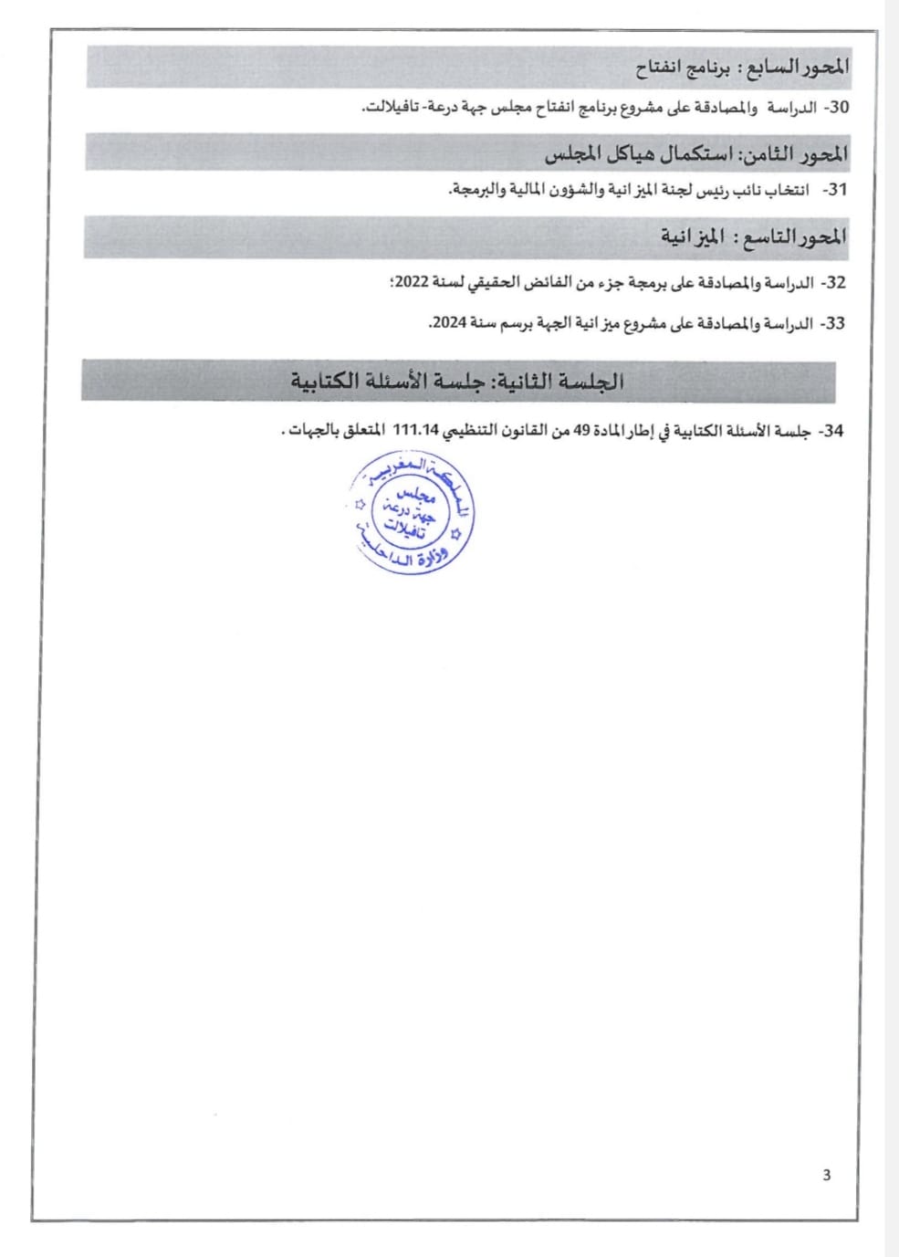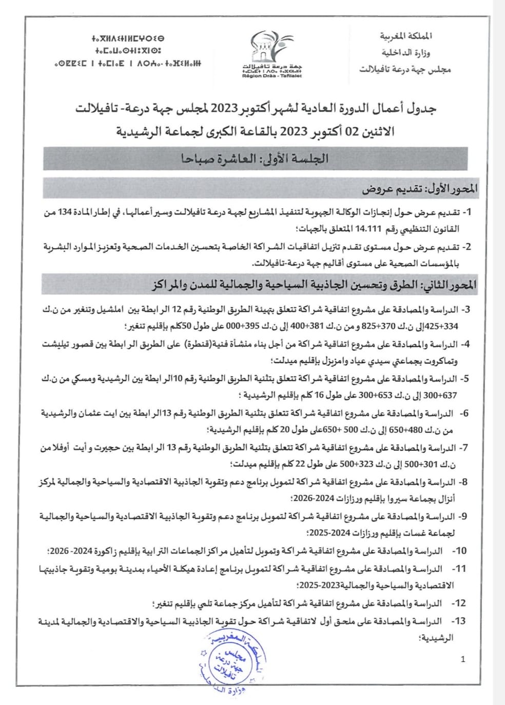 جدول أعمال الدورة العادية لمجلس جهة درعة تافيلالت لشهر أكتوبر 2023 قصبة نيوز سبتمبر 20, 2023 محلي اضف تعليق 761 زيارة شاركها Facebook Twitter شارك هذا الموضوع: انقر للمشاركة على WhatsApp (فتح في نافذة جديدة) WhatsApp انقر للمشاركة على فيسبوك (فتح في نافذة جديدة) فيس بوك اضغط للطباعة (فتح في نافذة جديدة) طباعة انقر للمشاركة على Telegram (فتح في نافذة جديدة) Telegram النقر للمشاركة على X (فتح في نافذة جديدة) X معجب بهذه:إعجاب تحميل...