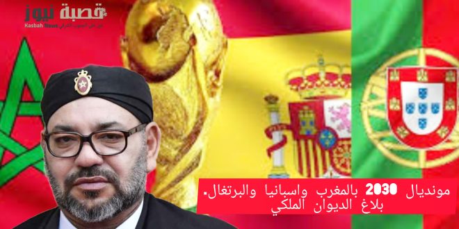 “يزف صاحب الجلالة الملك محمد السادس، نصره الله، بفرحة كبيرة للشعب المغربي خبر اعتماد مجلس الاتحاد الدولي لكرة القدم، بالإجماع، لملف المغرب – إسبانيا – البرتغال كترشيح وحيد لتنظيم كأس العالم 2030 لكرة القدم.
