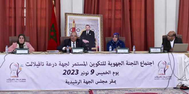 الرشيدية – صادقت اللجنة الجهوية للتكوين المستمر لجهة درعة تافيلالت، مخؤرا خلال اجتماع عقد بمقر الجهة على مشروع التصميم المديري الجهوي للتكوين المستمر لفائدة المنتخبين بجهة درعة تافيلالت للفترة الممتدة ما بين 2023 و 2027.