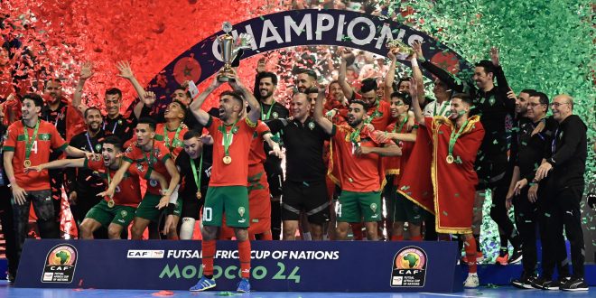 الرباط – ظفر المنتخب المغربي بلقب كأس إفريقيا للأمم لكرة القدم داخل القاعة (المغرب 2024)، للمرة الثالثة على التوالي، عقب فوزه على نظيره الأنغولي بنتيجة (5-1)، في المباراة النهائية التي جمعتهما، اليوم الأحد، على أرضية القاعة المغطاة الأمير مولاي عبد الله بالرباط.