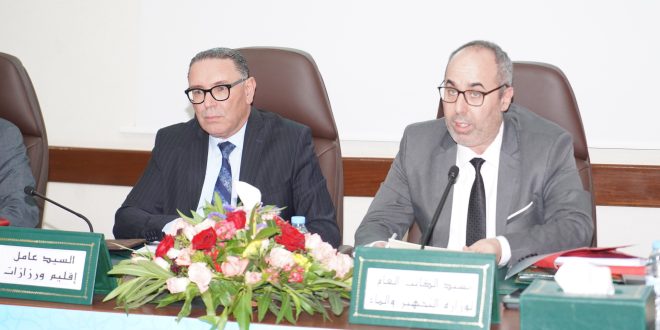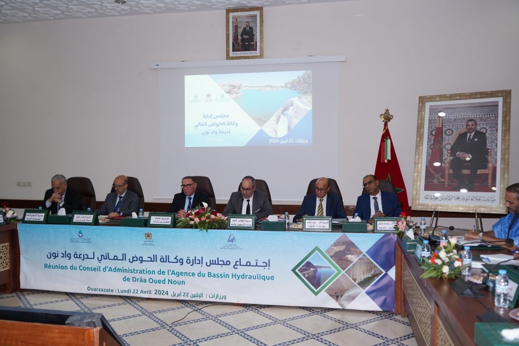 عقدت وكالة الحوض المائي لدرعة واد نون، اليوم الاثنين بورزازات، مجلسها الإداري برسم سنة 2023 برئاسة الكاتب العام لوزارة التجهيز والماء، مصطفى فارس.وخصصت أشغال هذا الاجتماع، الذي جرى بحضور عامل إقليم ورزازات، عبد الله جاحيظ، لحصر حسابات الوكالة برسم السنة المالية 2022، وعرض حصيلة عملها ووضعية تقدم إنجاز برنامج سنة 2023 ، وكذا تقديم برنامج عمل الوكالة برسم السنة المالية 2024.وأكد الكاتب العام لوزارة التجهيز والماء، في كلمة خلال افتتاح هذا الاجتماع، أن المجلس الإداري لوكالة الحوض المائي ينعقد في ظرفية مناخية استثنائية تتسم بقلة التساقطات المطرية، وما لها من انعكاسات على الموارد المائية.