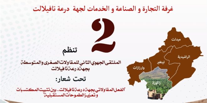 تحتضن مدينة زاكورة يوم السبت 23 نونبر 2024 بقاعة الاجتماعات الكبرى بعمالة زاكورة أشغال الملتقـــــــــــــى الجهوي الثـــــــــاني للمقاولات الصغرى والمتوسطة، تحت شعار: ” الفعل ألمقاولاتي بجهة درعة تافيلالت : بين تثبيت المكتسبات و تعزيز الطموحات المستقبلية”. و