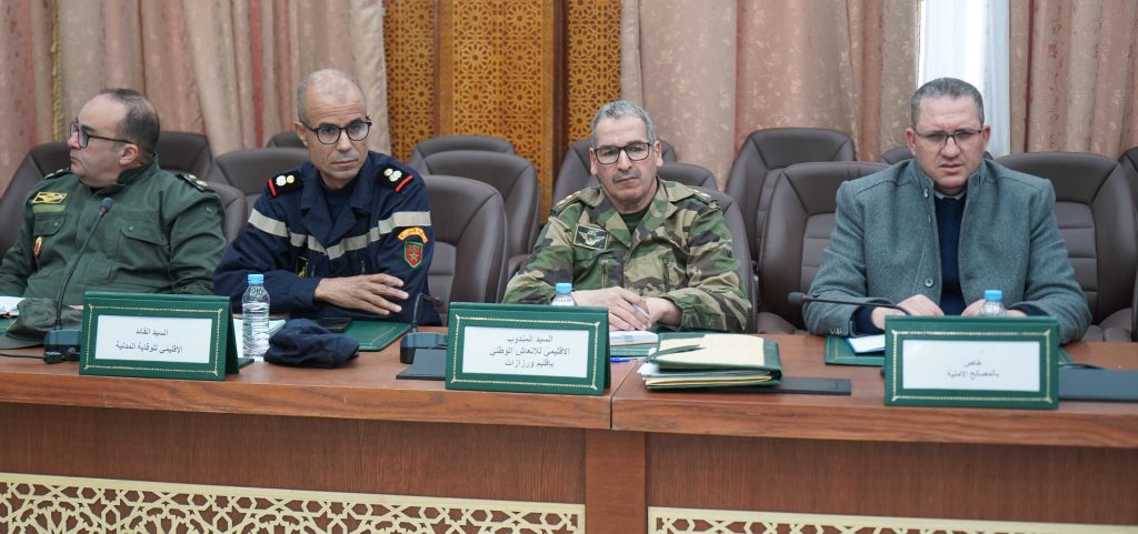 وحضر هذا الاجتماع بمقر عمالة ورزازات، كل من قائد الحامية العسكرية والمسؤولين الجهويين والإقليميين للمصالح الامنية والمصالح اللاممركزة للدولة.