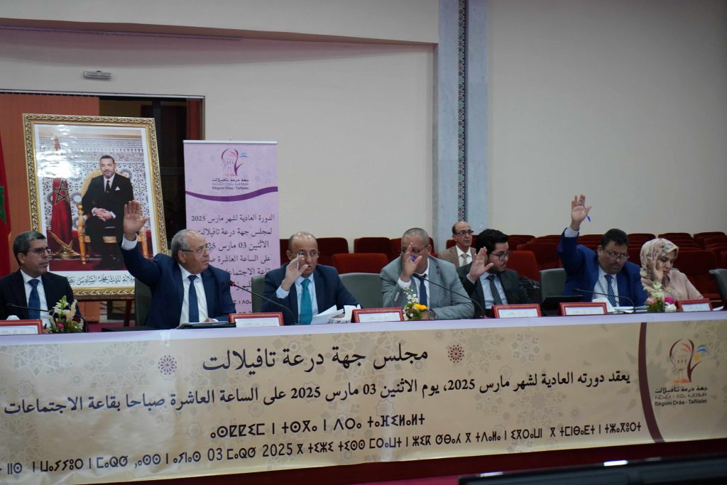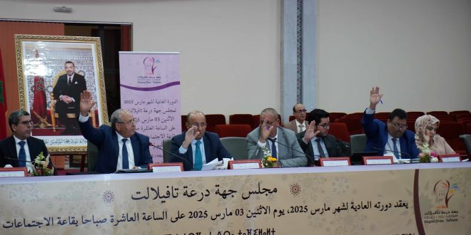 زاكورة – عقد مجلس جهة درعة تافيلالت، امس الاثنين بزاكورة دورته العادية لشهر مارس، صادق خلالها على عدد من اتفاقيات الشراكة والتعاون التي شملت مجالات اجتماعية، اقتصادية ورياضية متنوعة.