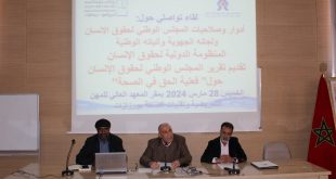 نظمت اللجنة الجهوية لحقوق الإنسان بجهة درعة تافيلالت لقاءين تواصليين بالموازاة، يوم الخميس الماضي لفائدة أطر المعهد العالي للمهن التمريضية وتقنيات الصحة بالجهة، الأول بفضاء المعهد بالرشيدية والثاني بفضاء المعهد بورزازات. وتندرج هذه اللقاءات التي شارك فيها طلبة الماستر، وأساتذة المعهد وأساتذة الكلية المتعددة التخصصات،في إطار تنزيل برنامج عمل اللجنة …